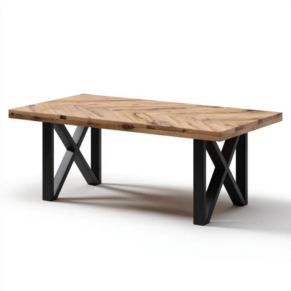 Introduction du produitCette table à manger en bois de chêne massif est un ajout élégant à tout espace de vie, conjuguant robustesse et style industriel moderne.